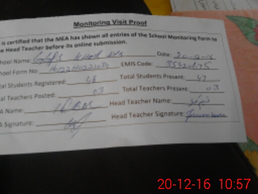| Attendance Register | Head Teacher | MEA with School | Visit Proof |
