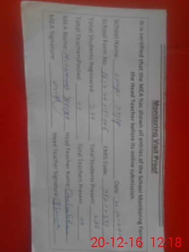 | Certified that this School was Inspected by the Undersigned MEA/DMO Today and the Information Stated Above is as Per Record. | |||||