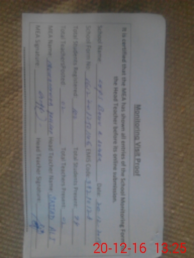 | Attendance Register | Head Teacher | MEA with School | Visit Proof |