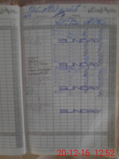 | CNIC | Full Name | Designation | R/C | Absence During Last Calender Month |