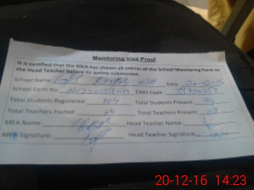 | Attendance Register | Head Teacher | MEA with School | Visit Proof |