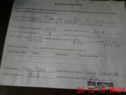 | Certified that this School was Inspected by the Undersigned MEA/DMO Today and the Information Stated Above is as Per Record. | |||||