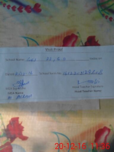 | School Visited by School Health & Nutrition Supervisor (No. of Visits) | 1 | Name1: | M AKRAM | Name2: | |