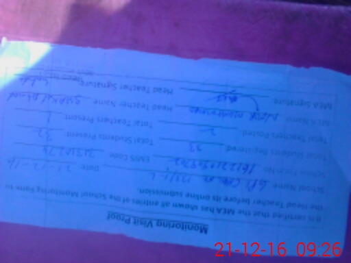 | Monitoring Date: 21-12-2016 | Start Time: 21-12-2016 09:05 AM | End Time: 21-12-2016 09:31 AM | Name of MEA: No**** Mu**** | |