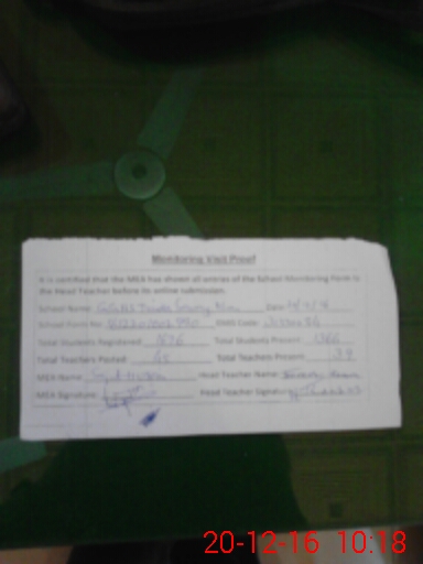 | Certified that this School was Inspected by the Undersigned MEA/DMO Today and the Information Stated Above is as Per Record. | |||||