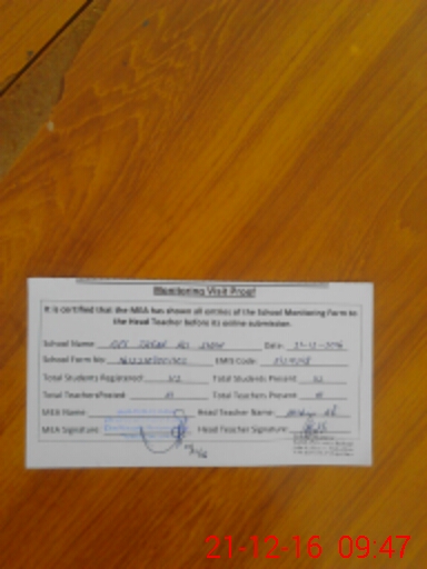 | Certified that this School was Inspected by the Undersigned MEA/DMO Today and the Information Stated Above is as Per Record. | |||||