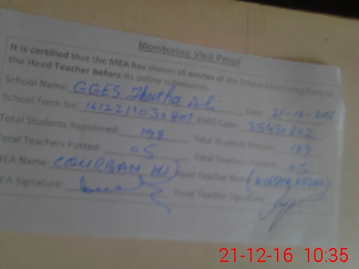 | Certified that this School was Inspected by the Undersigned MEA/DMO Today and the Information Stated Above is as Per Record. | |||||