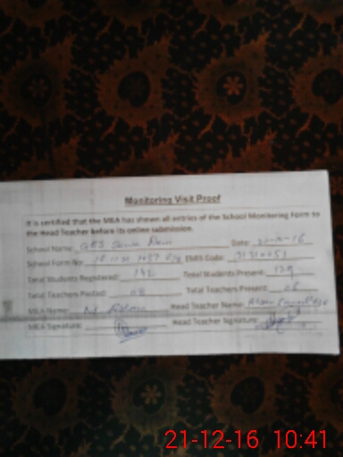 | Certified that this School was Inspected by the Undersigned MEA/DMO Today and the Information Stated Above is as Per Record. | |||||