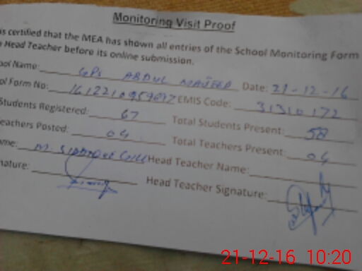 | EMIS Code: 31310172 | Name of School: GPS ABDUL MAJEED | |||