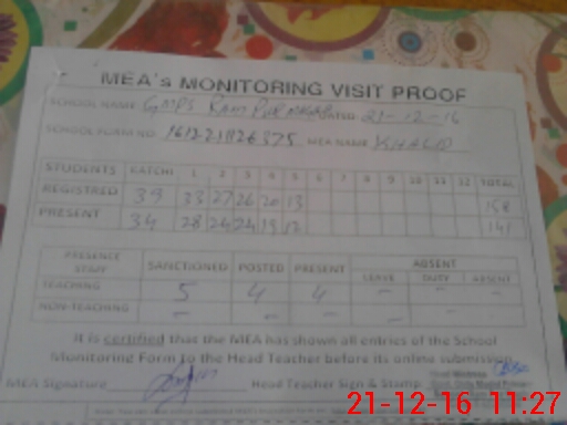 | Attendance Register | Head Teacher | MEA with School | Visit Proof |