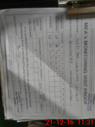 | Attendance Register | Head Teacher | MEA with School | Visit Proof |