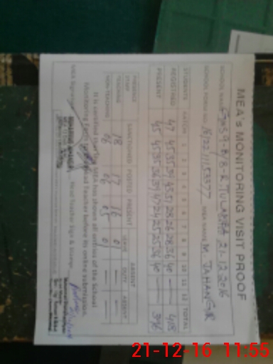 | Monitoring Date: 21-12-2016 | Start Time: 21-12-2016 11:07 AM | End Time: 21-12-2016 11:56 AM | Name of MEA: Mu**** Ja**** | |