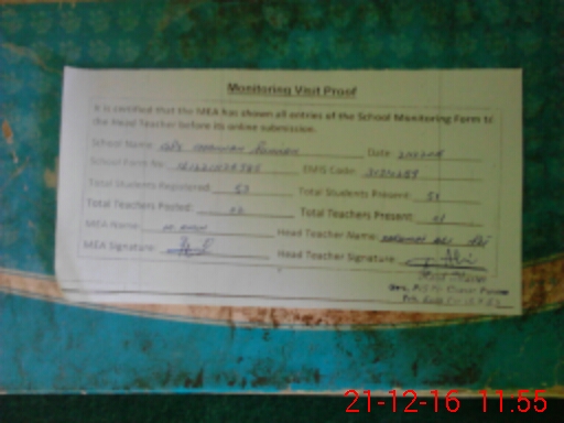 | Certified that this School was Inspected by the Undersigned MEA/DMO Today and the Information Stated Above is as Per Record. | |||||
