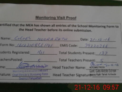 | Attendance Register | Head Teacher | MEA with School | Visit Proof |