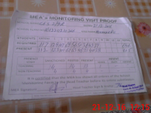 | Attendance Register | Head Teacher | MEA with School | Visit Proof |