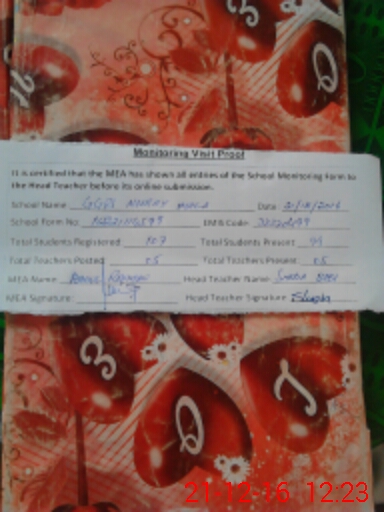 | Attendance Register | Head Teacher | MEA with School | Visit Proof |