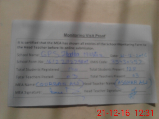 | EMIS Code: 35430457 | Name of School: GPS THATTA NUSTER | |||