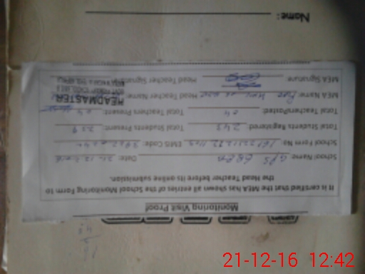 | Name: Mu**** IM**** Designation: (School Headmaster's/Headmistress's) PST Phone/Cell Number: 03**** |