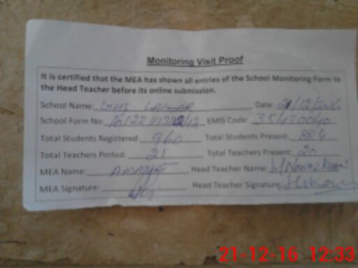 | Certified that this School was Inspected by the Undersigned MEA/DMO Today and the Information Stated Above is as Per Record. | |||||