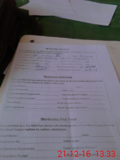 | Attendance Register | Head Teacher | MEA with School | Visit Proof |