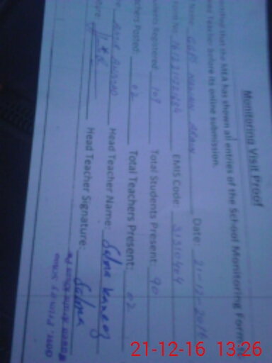 | Attendance Register | Head Teacher | MEA with School | Visit Proof |