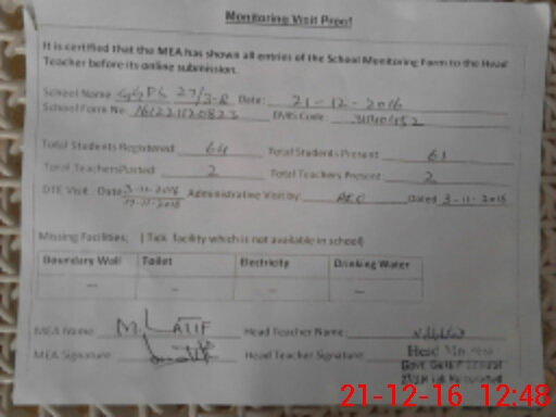 | Certified that this School was Inspected by the Undersigned MEA/DMO Today and the Information Stated Above is as Per Record. | |||||