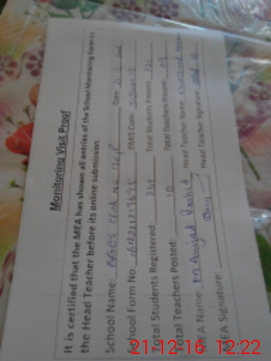 | Certified that this School was Inspected by the Undersigned MEA/DMO Today and the Information Stated Above is as Per Record. | |||||
