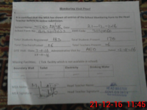 | Certified that this School was Inspected by the Undersigned MEA/DMO Today and the Information Stated Above is as Per Record. | |||||