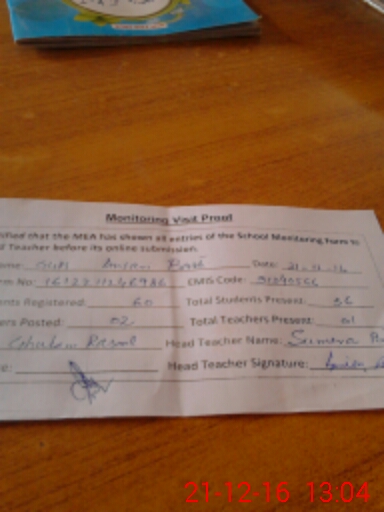 | Attendance Register | Head Teacher | MEA with School | Visit Proof |