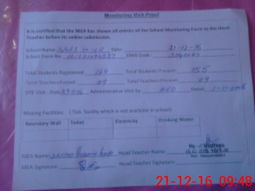| Certified that this School was Inspected by the Undersigned MEA/DMO Today and the Information Stated Above is as Per Record. | |||||