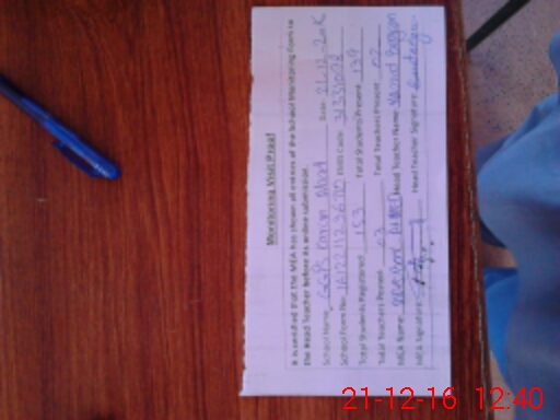 | Attendance Register | Head Teacher | MEA with School | Visit Proof |