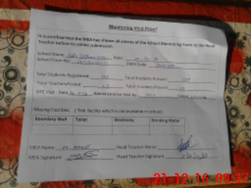| Certified that this School was Inspected by the Undersigned MEA/DMO Today and the Information Stated Above is as Per Record. | |||||