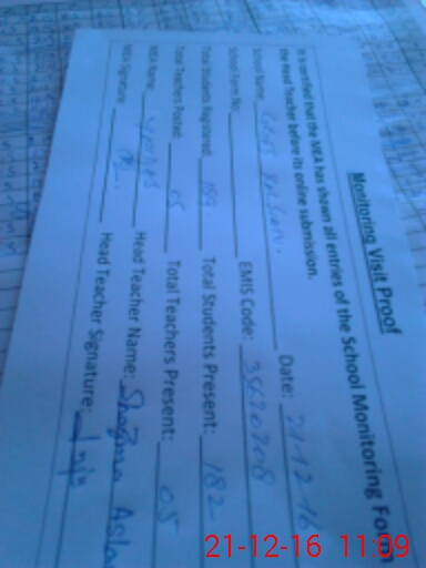 | Attendance Register | Head Teacher | MEA with School | Visit Proof |