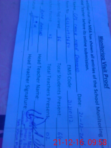 | EMIS Code: 31310112 | Name of School: GPS CHOWK NADIR SHAHEED (After Noon) | |||