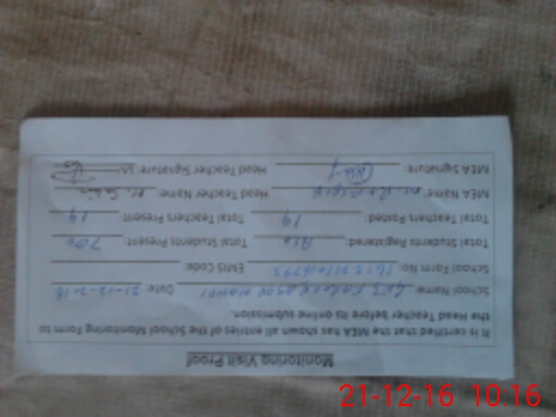 | Monitoring Date: 21-12-2016 | Start Time: 21-12-2016 09:25 AM | End Time: 21-12-2016 10:25 AM | Name of MEA: Mu**** iq**** (D**** | |