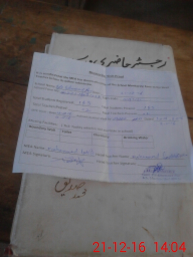 | Attendance Register | Head Teacher | MEA with School | Visit Proof |