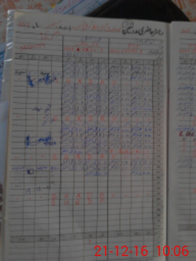 | CNIC | Full Name | Designation | R/C | Absence During Last Calender Month |