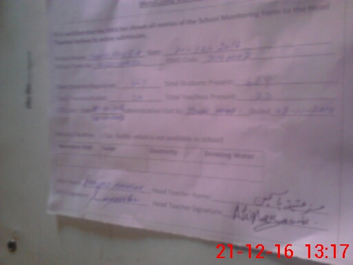 | Attendance Register | Head Teacher | MEA with School | Visit Proof |