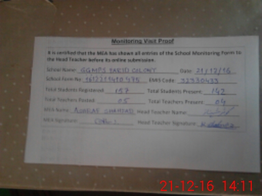 | Certified that this School was Inspected by the Undersigned MEA/DMO Today and the Information Stated Above is as Per Record. | |||||