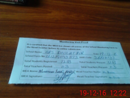 | Attendance Register | Head Teacher | MEA with School | Visit Proof |