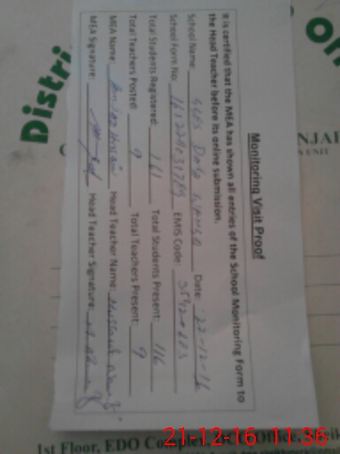 | Certified that this School was Inspected by the Undersigned MEA/DMO Today and the Information Stated Above is as Per Record. | |||||