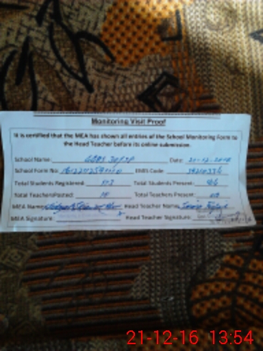 | Attendance Register | Head Teacher | MEA with School | Visit Proof |