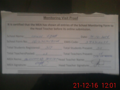 | Certified that this School was Inspected by the Undersigned MEA/DMO Today and the Information Stated Above is as Per Record. | |||||
