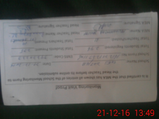 | Certified that this School was Inspected by the Undersigned MEA/DMO Today and the Information Stated Above is as Per Record. | |||||