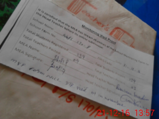 | Attendance Register | Head Teacher | MEA with School | Visit Proof |