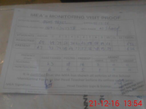 | Certified that this School was Inspected by the Undersigned MEA/DMO Today and the Information Stated Above is as Per Record. | |||||