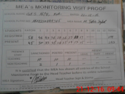 | EMIS Code: 36420162 | Name of School: GES 16/V, KHANEWAL | |||