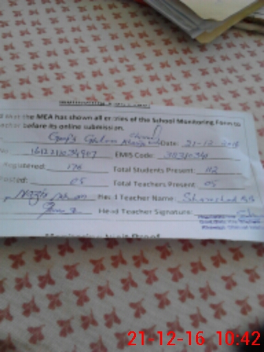 | EMIS Code: 38310241 | Name of School: GMPS GHULAM KHAWAJA CHEENAL WALA | |||