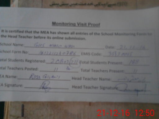 | Name: Al**** Ah**** Designation: (School Headmaster's/Headmistress's) Incharge Headmaster Phone/Cell Number: 03**** |