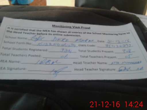 | Name: AT**** MU**** Designation: (School Headmaster's/Headmistress's) Pst Phone/Cell Number: 03**** |